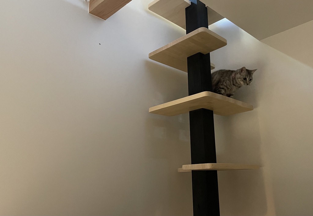 キャットタワーがぽつんと置かれている家では、家族が遊んであげたとしても退屈な住まいの領域から抜け出せません。