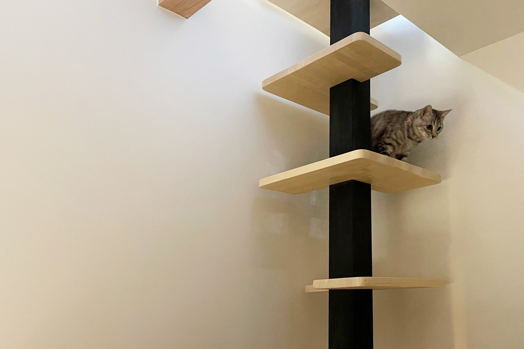 キャットタワーがぽつんと置かれている家では、家族が遊んであげたとしても退屈な住まいの領域から抜け出せません。