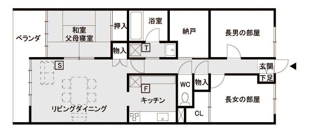 一方、図2 のようなマンションに代表される間取りでは、玄関とコアスペースが遠く離れ、さらにリビングダイニングの扉を閉ざせば、玄関で飼い主と来訪者との間で交わされるやりとりは、あまり犬に刺激を与えないのかもしれない。その証左として、サンプリングされた64 件のうち、過剰な吠えは12 件にとどまった。