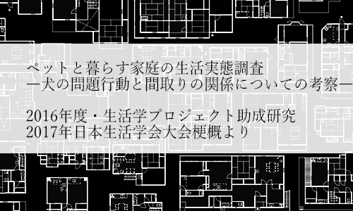 ::犬と暮らす家の設計理論 Advance Series:: 1. はじめに 1-1.経緯 本稿は筆者の指導の下、中央動物専門学校動物共生科(東京都北区)の学生とともに2009 年~2015 までに行ってきたSTF調査 … 続きを読む ペットと暮らす家庭の生活実態調査