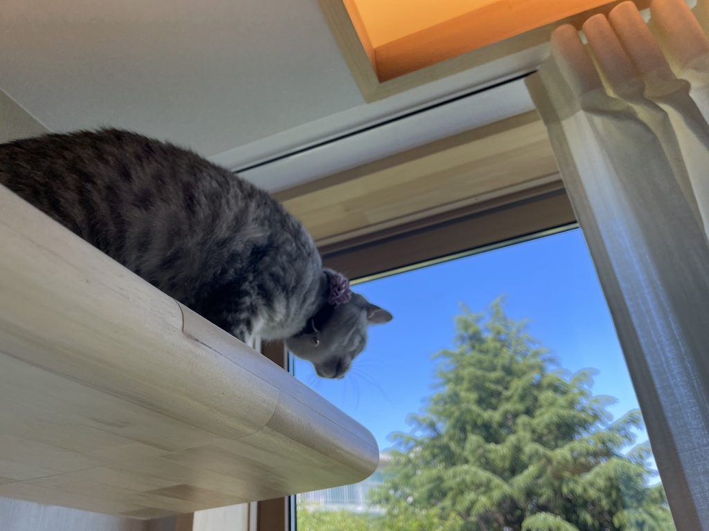 そのほか、キャットウォーク上から窓を通して、猫が外を見ることができるようにしてあげることも大切です。人間だって道を歩くときに風景の移り変わりを期待するものです。ですから、キャットウォークが窓の上に取り付けてあり、外が見られない状態にあるような事例を見ると残念でなりません。