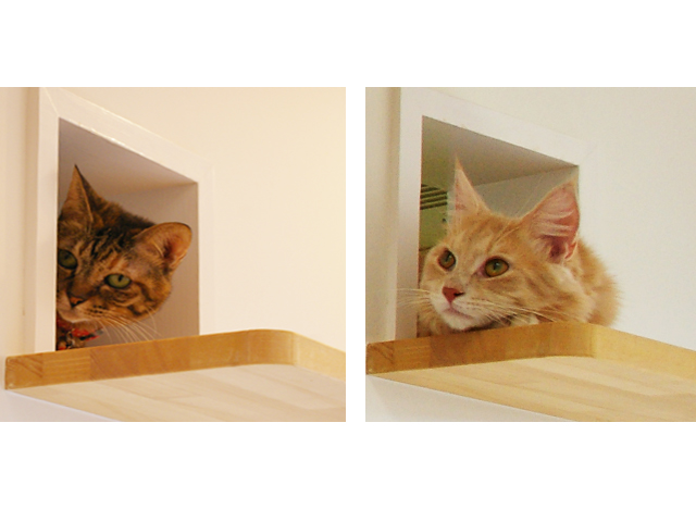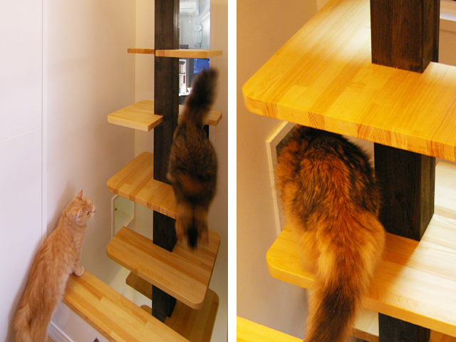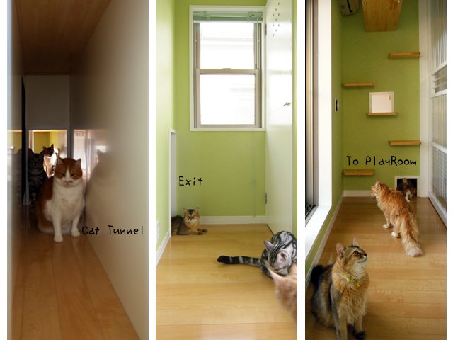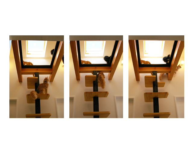 I was lucky enough to have the opportunity to visit “the Cats’ House” in the autumn of 2009. The feature that I found most striking was the myriad cat steps, pathways and tunnels, both high and low, that run throughout the entire two storeys. This network of cat passages represents the pinnacle of good design, combining utility, style and a generous sprinkling of fun.