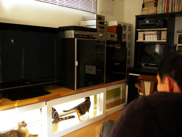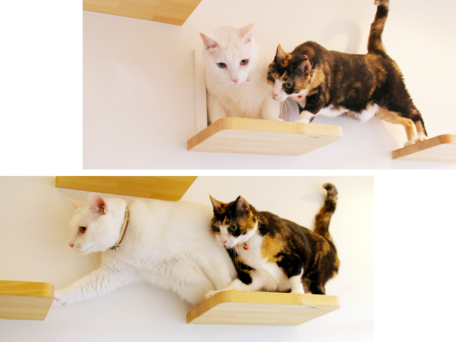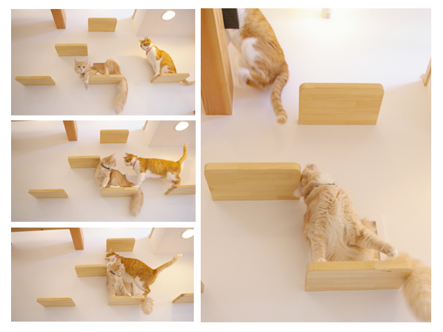 ■壁の向こうに側にある隣の部屋(GreenRoom)に出入りできる猫穴は何故か人気の場所なので、 猫ステップはこんなふうに時々渋滞します。