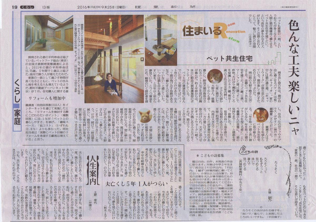住まいR 平成28年9月25日 ペット共生住宅 「Catioのある家」