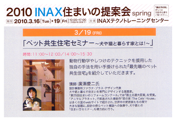 アリアンツ・ペット保険 公式ブログでも一度ご紹介させていただきました『猫の家』を設計した廣瀬慶二(ひろせけいじ)氏のセミナーです。